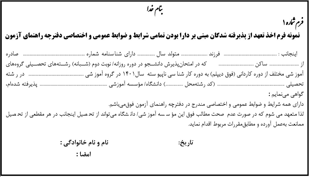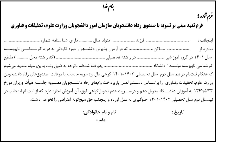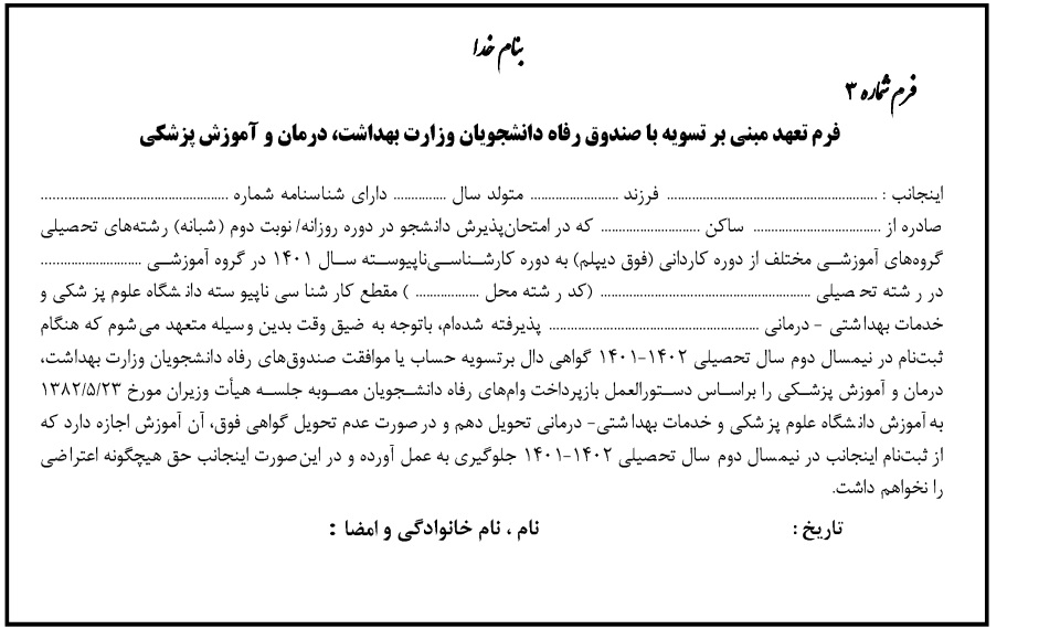 * فرم تعهد نامه محضری بازپرداخت شهریه (مخصوص دانشجویان شهریه پرداز)